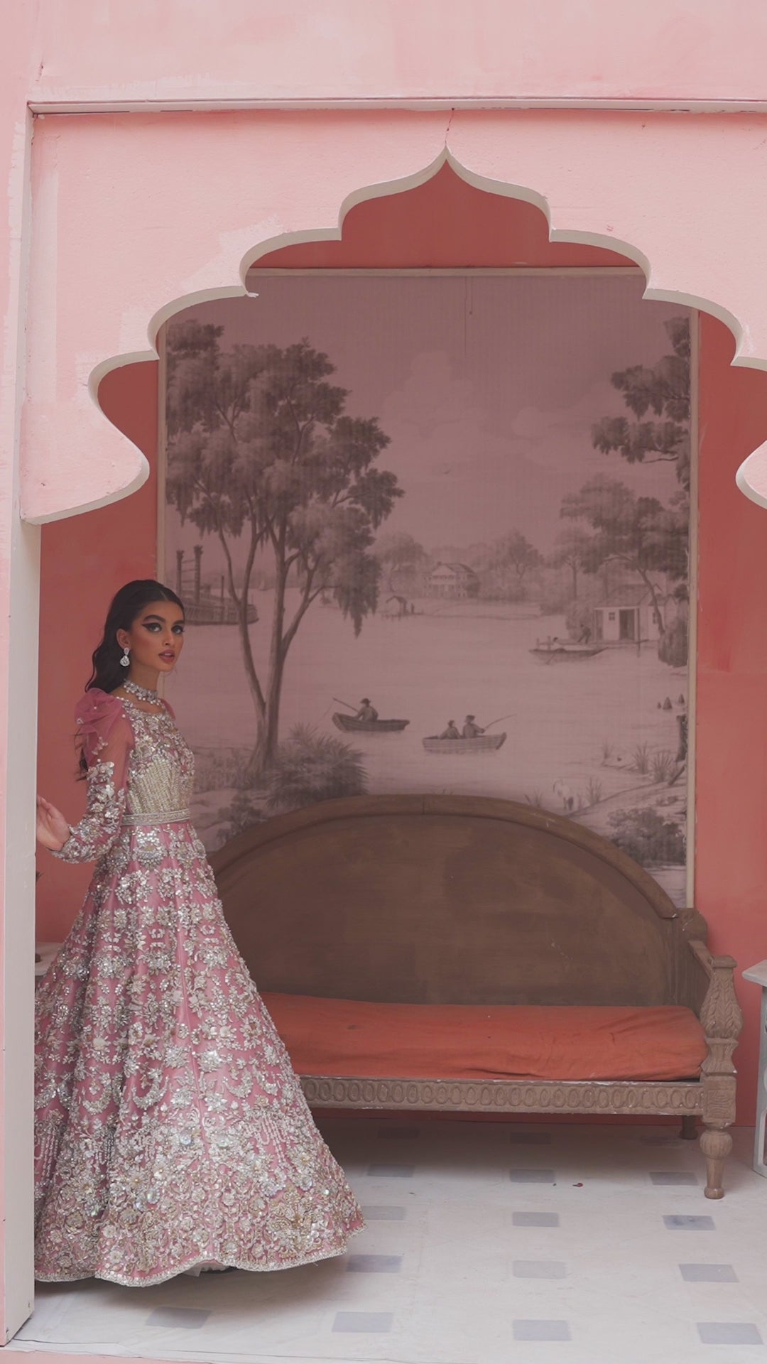 A breathtaking vision of modern couture, Rosailla embodies romance and refinement in every detail. Its bejeweled silhouette with a sweetheart neckline is brought to life with exquisite 3D Swarovski pearls and crystals, scattered across a delicate pink base like shimmering blossoms. The design strikes a perfect balance between contemporary elegance and timeless craftsmanship, radiating a soft yet regal aura. The flowing silhouette enhances its enchanting presence, making Rosailla both graceful and commanding. Designed for brides who want to embrace luxury with delicacy, Rosailla is a gown that celebrates beauty in its most radiant form.